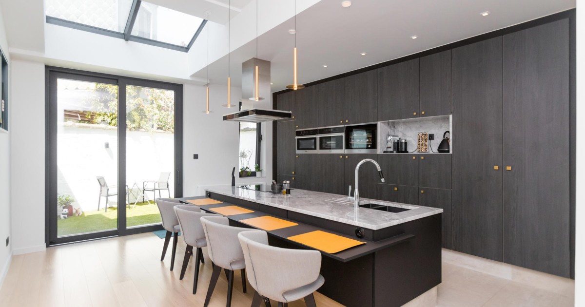 Ongetwijfeld is de lichtrijke living, en open keuken met directe toegang tot de zonnige stadstuin, dé ontmoetingsplek in deze woning. Alle kasten in heel de woning zijn op maat gemaakt. Zo zijn de livingwanden voorzien van eikvineer en het keukeneiland voorzien van een white poly marmersteen.